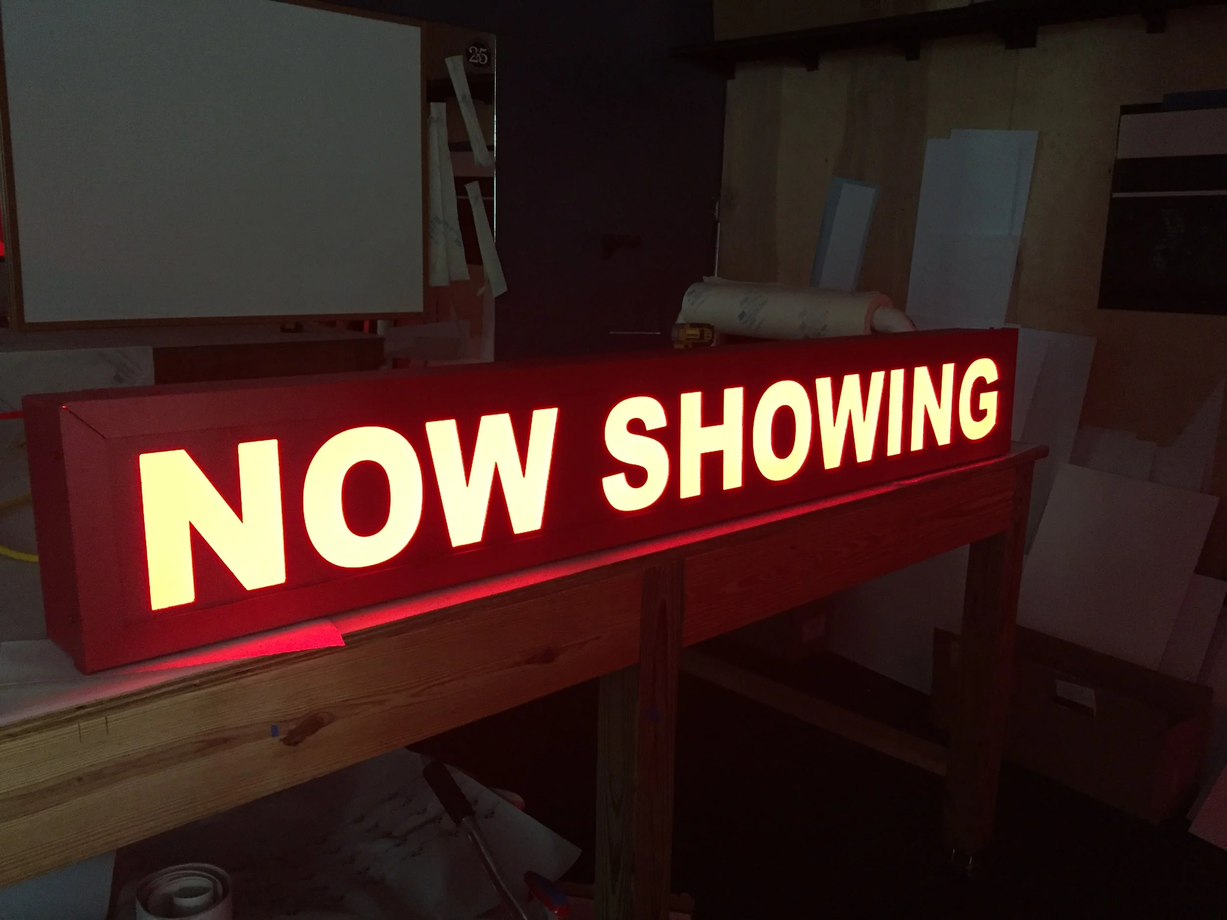 Box sign were built for the movie room that showed every 30 minutes. It would automatically come on when the movie was showing